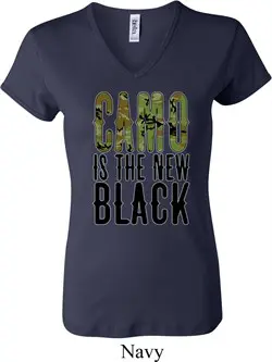 Ladies Funny Shirt Camo is the New Black V-neck Tee T-Shirt