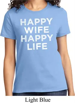 Ladies Funny Shirt Happy Wife Happy Life Tee T-Shirt
