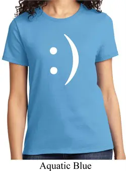 CompareLadies Funny Shirt Smiley Chat Face Tee T-Shirt 100% cotton Ash an athletic heather are a cotton/poly blend Available in Ladies Small, Ladies Medium, Ladies Large, Ladies XL, Ladies 2XL, Ladies 3XL & Ladies 4XL Also available in colors Aquatic Blue, Athletic Heather, Black, Candy Pink, Cardinal, Charcoal, Chocolate, Daffodil Yellow, Dark Green, Gold, Kelly, Light Blue, Lime, Navy, Orange, Purple, Red, Royal, Sangria, Stonewashed Blue, and Stonewashed Green