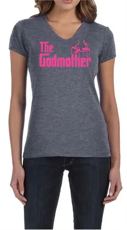 CompareLadies Funny Shirt The Godmother V-neck Tee T-Shirt 100% cotton Deep heather is a cotton/poly blend Available in Ladies Small, Ladies Medium, Ladies Large, Ladies XL & Ladies 2XL Also available in colors Baby Blue, Black, Chocolate, Deep Heather, Navy, Pink, Plum, Royal, White, and Yellow