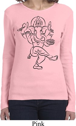 CompareA ladies long sleeve shirt featuring a funny sketch of the wise Ganesha. Our ladies tee is made of 100% cotton. (Deep Heather is made with a blend of cotton/poly) Available in sizes Small through 2XL. Machine wash cold with like colors; dry low heat.
