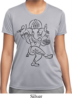 CompareA ladies moisture wicking shirt featuring a funny sketch of the wise Ganesha. Our ladies tee is made of 100% polyester. Available in sizes Small through 3XL. Machine wash cold with like colors; dry low heat.
