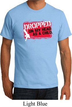 CompareMens Funny Shirt Dropped On My Head Organic Tee T-Shirt 100% cotton Available in Small, Medium, Large, XL, 2XL, 3XL & 4XL Also available in colors Black, Candy Pink, Charcoal, Chocolate, Clover Green, Daffodil Yellow, Light Blue, Lime, Medium Grey, Natural, Navy, Olive, Royal, and White