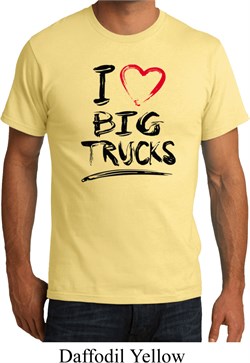 CompareMens Funny Shirt I Love Big Trucks Organic Tee T-Shirt 100% cotton Available in Small, Medium, Large, XL, 2XL, 3XL & 4XL Also available in colors Candy Pink, Charcoal, Clover Green, Daffodil Yellow, Light Blue, Lime, Medium Grey, Natural, Olive, Royal, and White