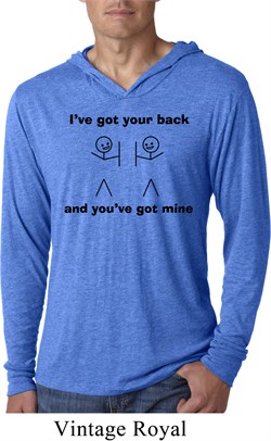 CompareMens Funny Shirt I’ve Got Your Back Lightweight Hoodie Tee T-Shirt A cotton/poly/rayon blend Available in Small, Medium, Large, XL & 2XL Also available in colors Indigo, Macchiato, Premium Heather, Venetian Grey, Vintage Red, Vintage Royal, and White