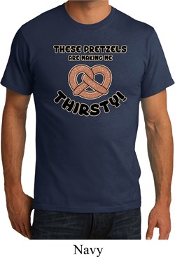 CompareMens Funny Shirt Thirsty Pretzels Organic Tee T-Shirt 100% cotton These pretzels are making me thirsty Available in Small, Medium, Large, XL, 2XL, 3XL & 4XL Also available in colors Black, Candy Pink, Charcoal, Chocolate, Clover Green, Daffodil Yellow, Light Blue, Lime, Medium Grey, Natural, Navy, Olive, Orange, Red, Royal, and White