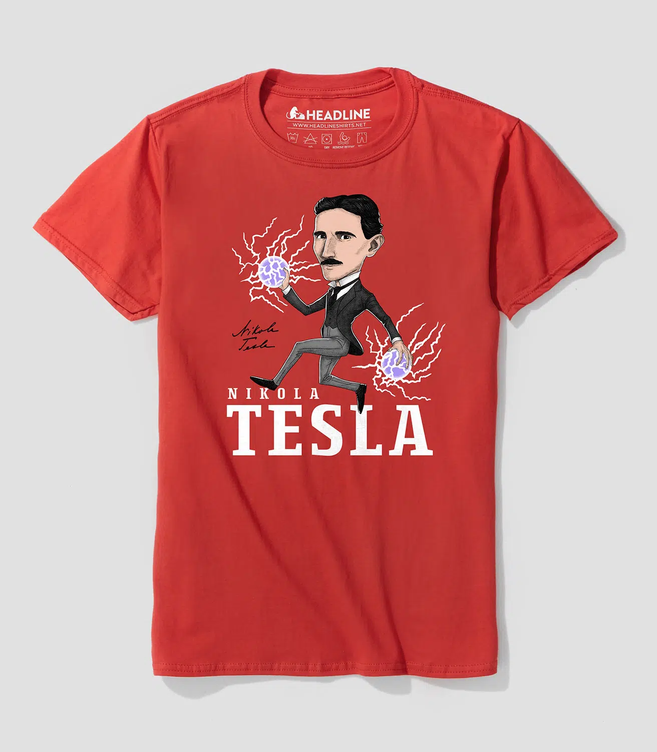 Tesla Retro Caricature Unisex 100% Cotton T-Shirt